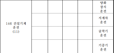 - 건축, 건설기계 운전, 기계 장비 설비ㆍ설치, 철도, 조선, 항공, 자동차, 화공,