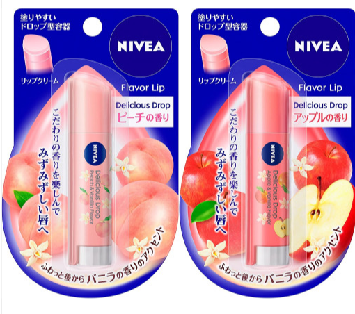향긋한 복숭아와 사과 립밤인 니베아 제품입니다.