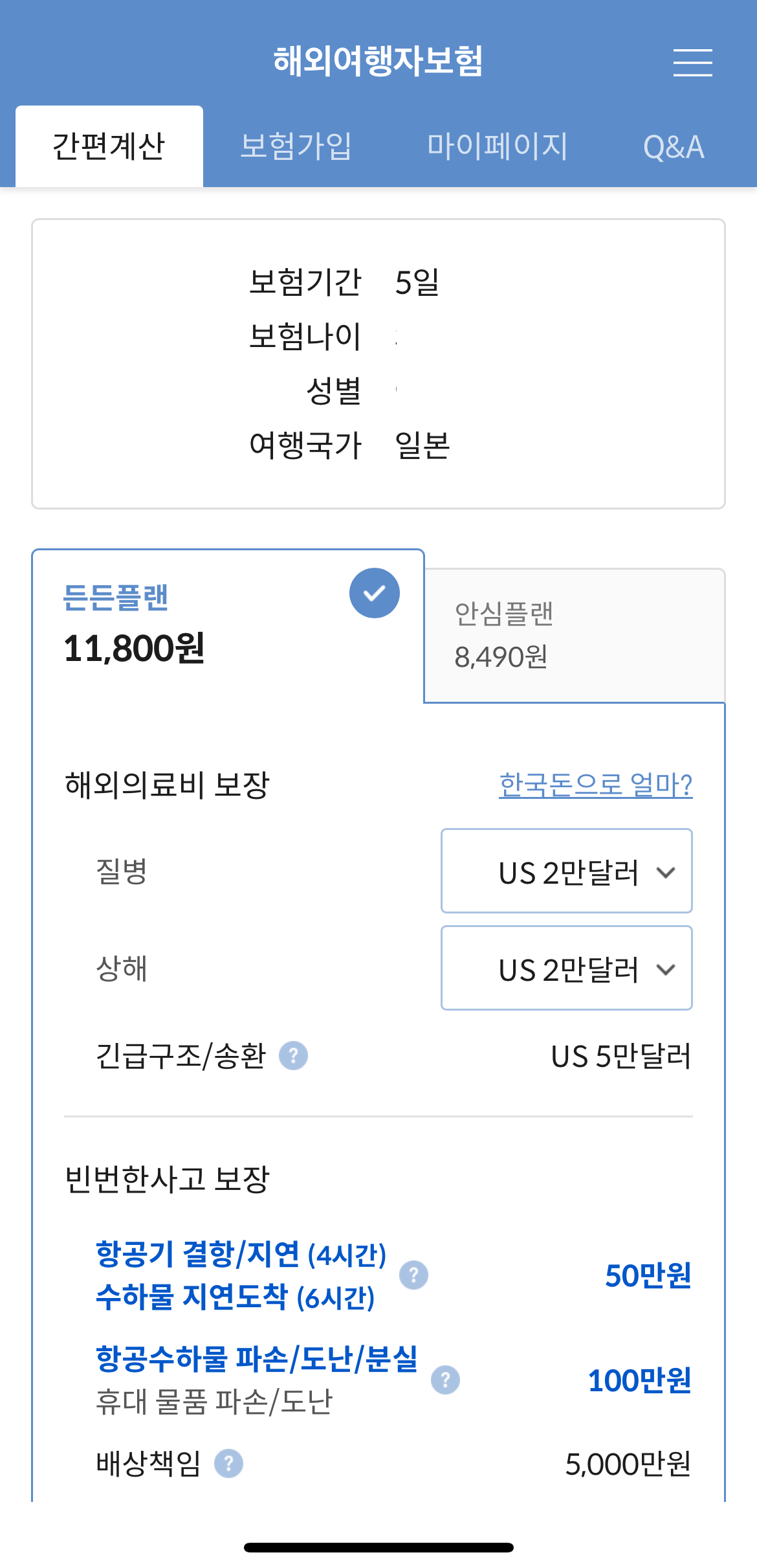 안심플랜으로 가입했습니다.