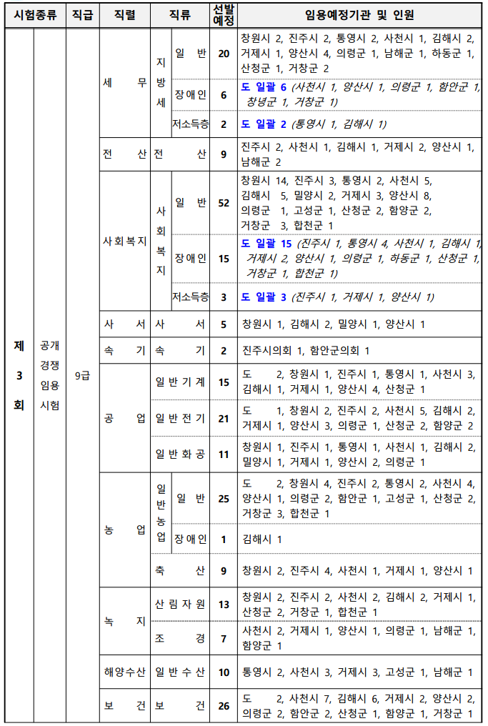 2024 경상남도 지방공무원 선발 예정 인원, 시험 일정(6/22 기준)