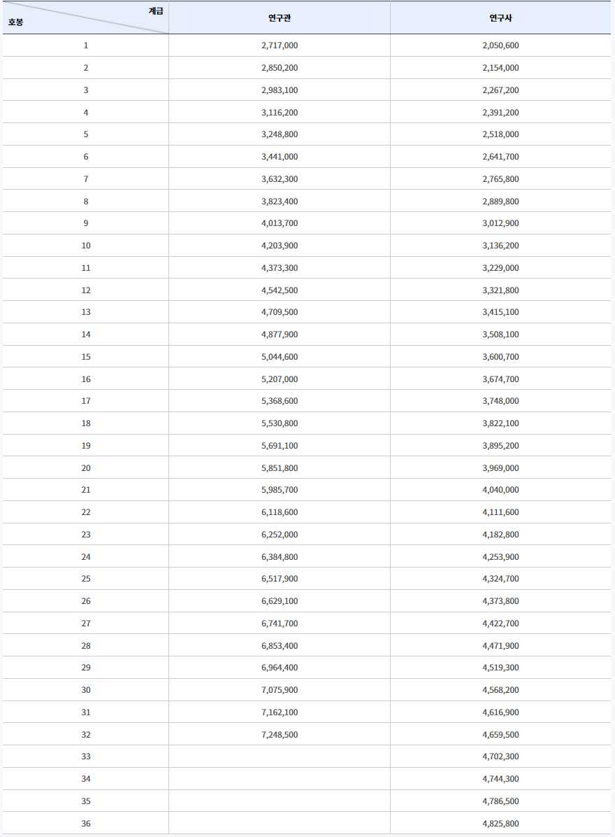 가군 1호봉은 2,717,000원, 나군 1호봉은 2,050,600원,