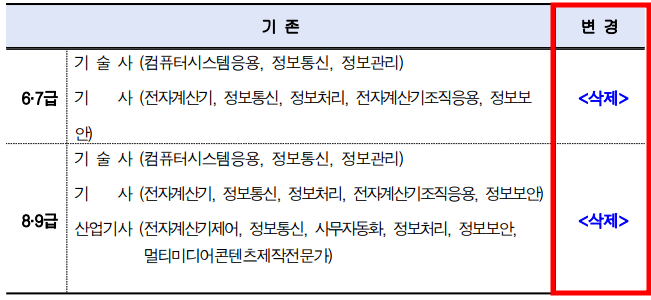 응시요건 필수 자격증을 가산 대상 자격증으로 전환했습니다.