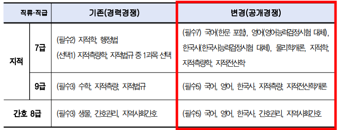 기존 경력 경쟁 임용시험에서 공개경쟁 임용시험으로 변경됩니다.
