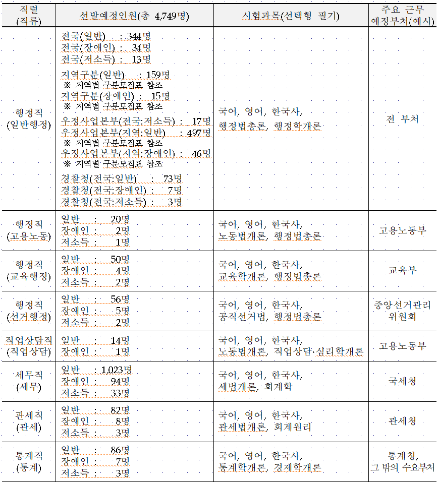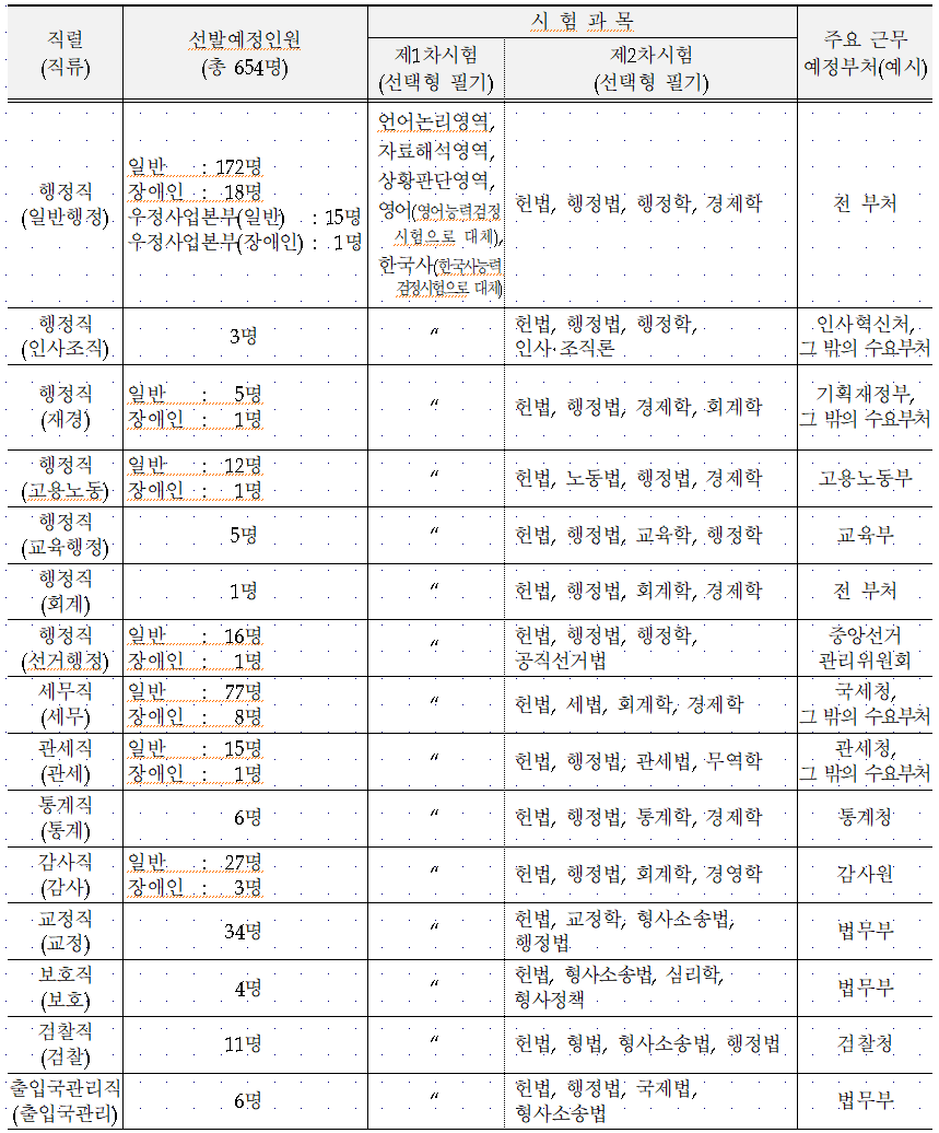 2024 국가공무원 선발 예정 인원 및 시험과목에 대해 알아보겠습니다.