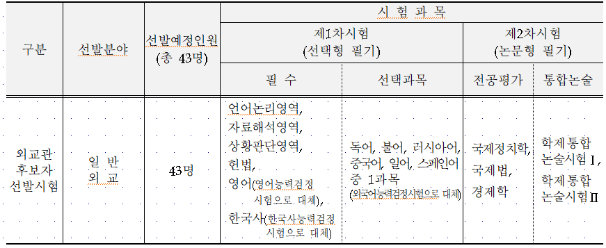 2024 외교자 후보자 선발 예정 인원은 총 43명입니다.
