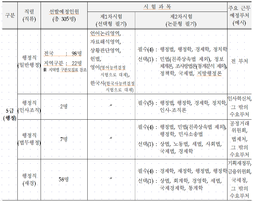 2024 국가공무원 5급 선발 예정 인원은 총 305명입니다.