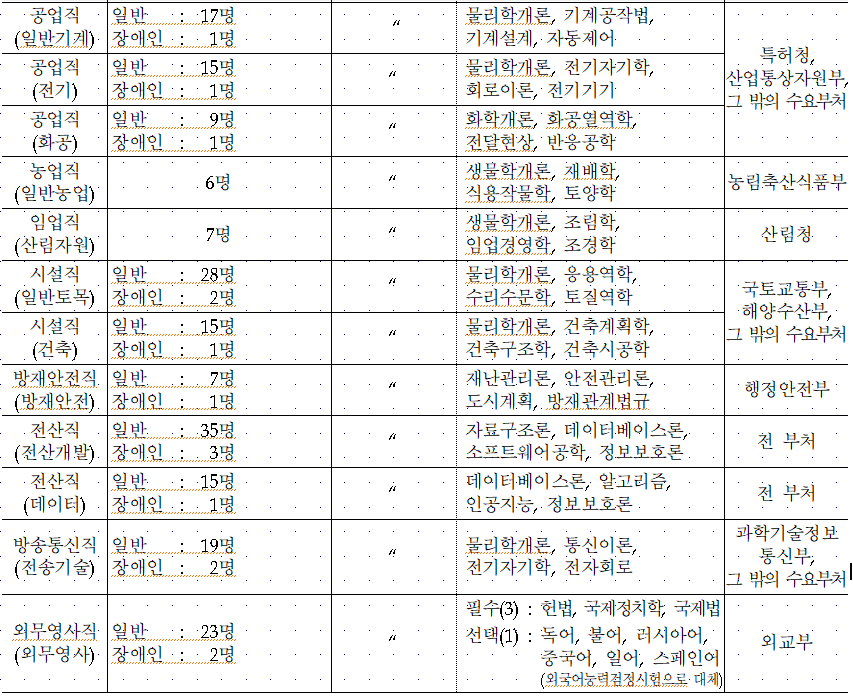 2024 국가공무원 선발 예정 인원 및 시험과목