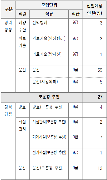 공업직 82명, 농업직 1명, 녹지직 61명, 보건직 5명, 간호직 10명, 환경직 3명, 시설직 234명,