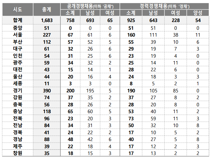 각 시도별 선발 예정 인원은 아래와 같습니다.