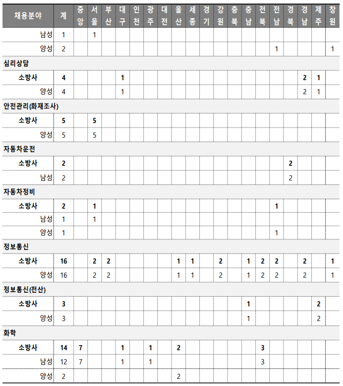심리상담은 4명, 안전관리(화재조사)는 5명, 자동차 운전은 2명, 자동차 정비는 2명,