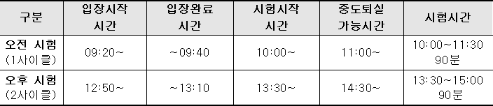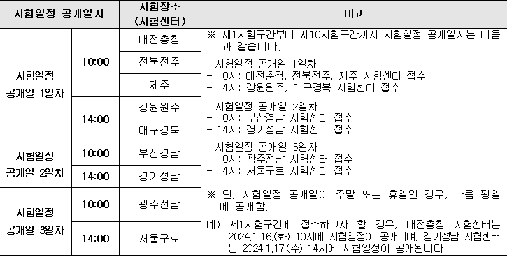 - 시험 일정 공개 일시 확인 후 접수 요망