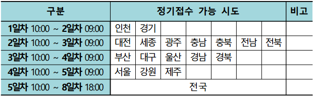정기 접수는 시도별 해당 접수일에만 접수할 수 있기 때문에