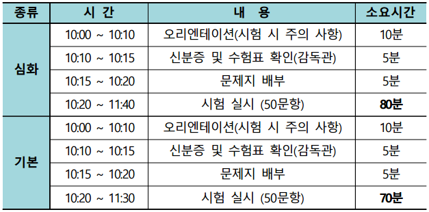 심화는 총 80분, 기본은 총 70분의 시험 시간이 주어집니다.